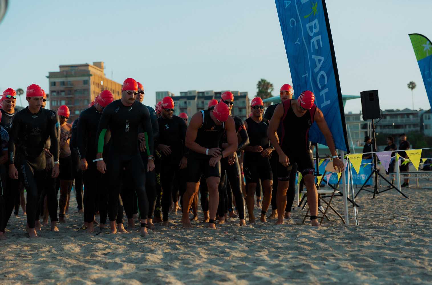 Wetsuits are recommended for comfort at typical Long Beach water temperatures. Under USAT rules, wetsuits are permitted and will not affect awards eligibility at these temperatures.