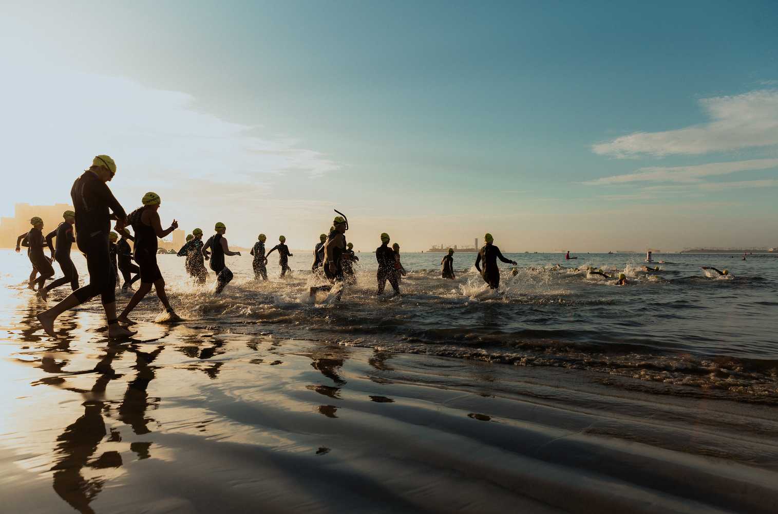 The Olympic swim is the real test. One and a half kilometers at Alamitos Beach. Breakwater-sheltered water, but real distance. This is where your open water training pays off.