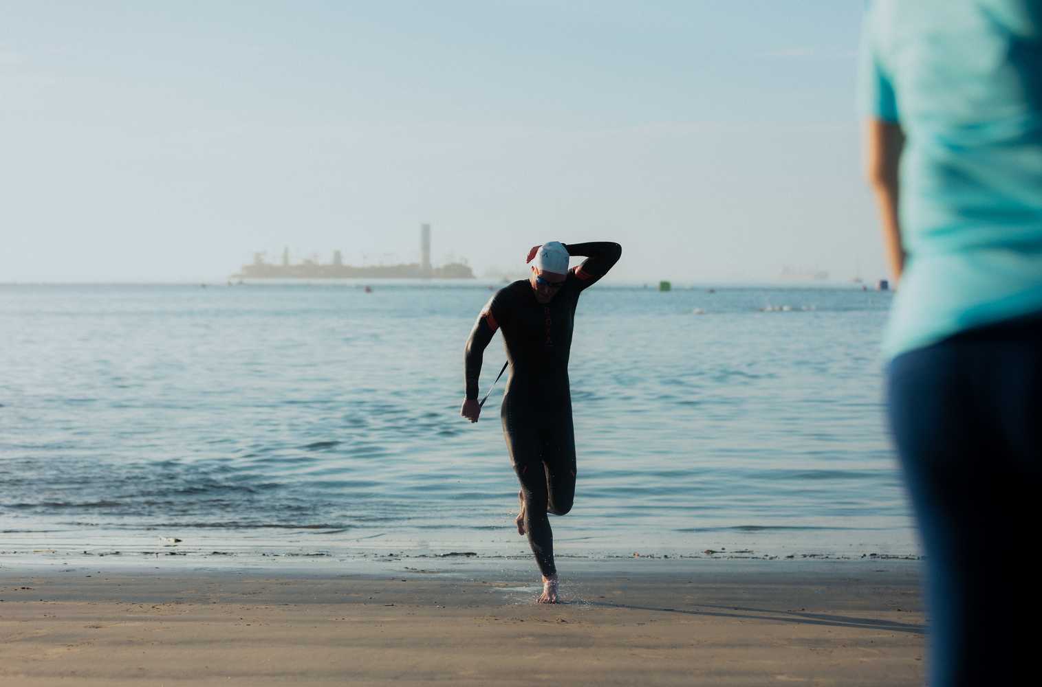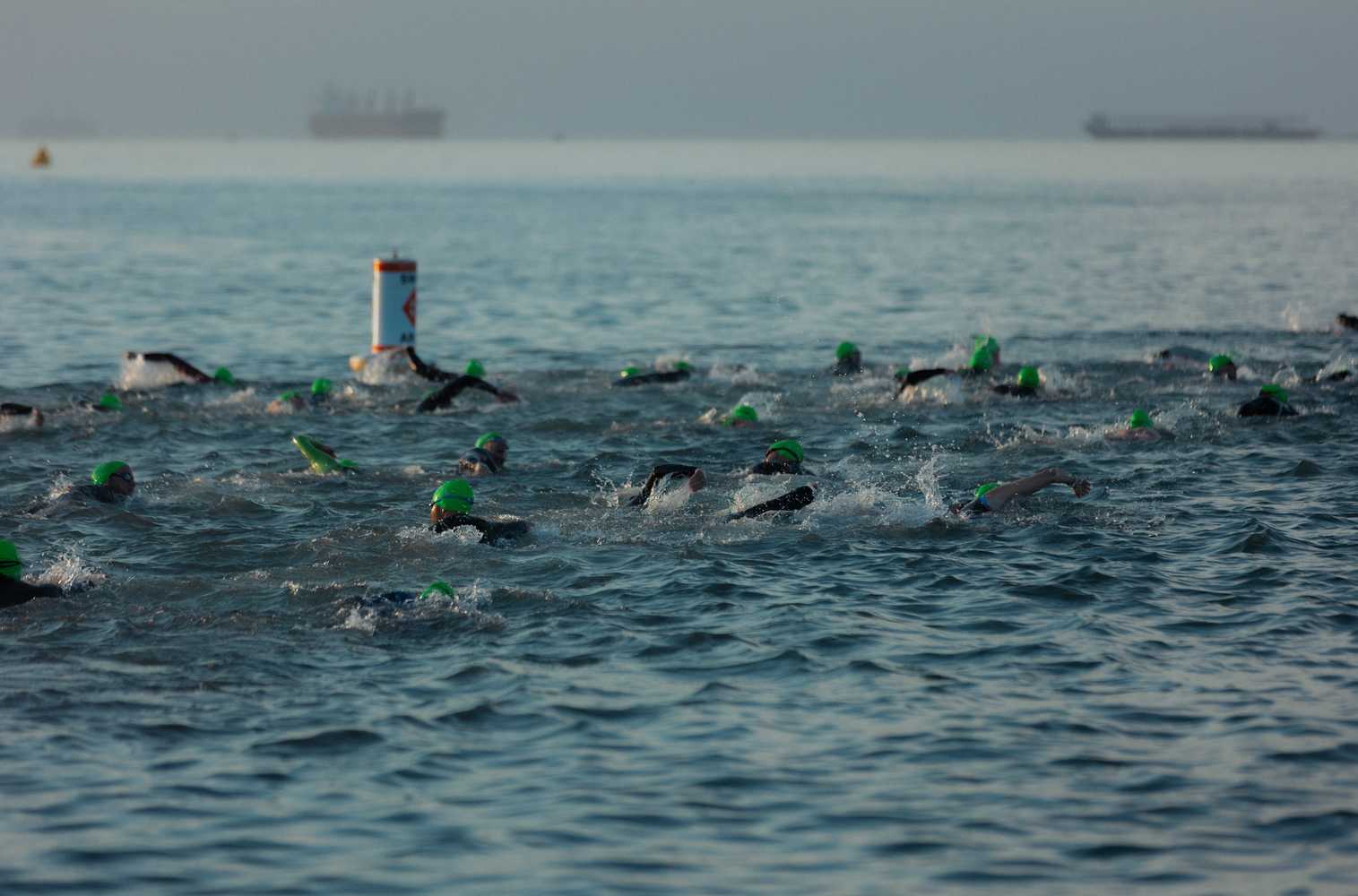You’ll enter from the beach and swim parallel to shore. The water is calm and predictable. By the time you exit the water, you’ll have established your race rhythm.