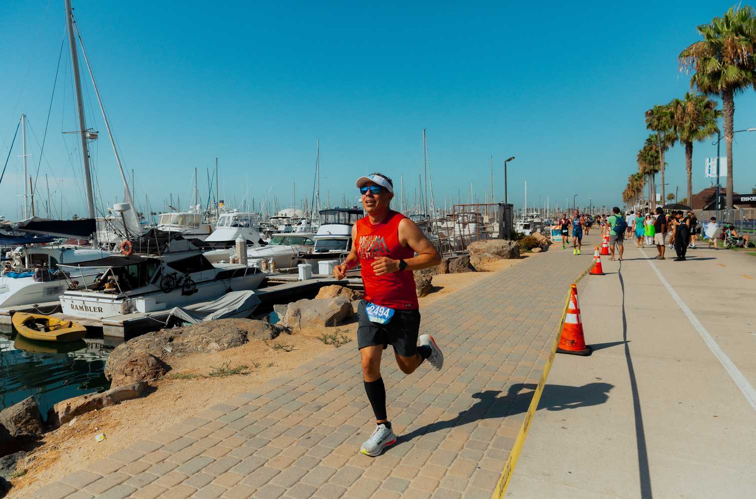 You've swum 750 meters. You've raced 20 kilometers on closed roads. Now the 5K is yours. Flat beachfront running with the Pacific breeze and spectators lining the course.